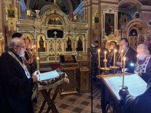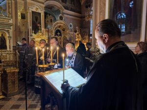 В среду первой недели Великого поста настоятель Александро-Невского храма с клириками совершили чтение Великого покаянного канона